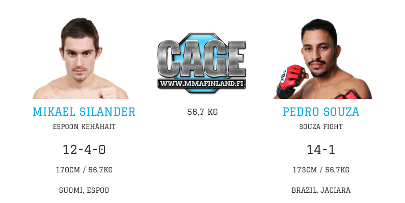 30-vuotiaan espoolaisen ammattilaisuralla saldona kuudestatoista ottelusta on 12 voittoa ja neljä tappiota. Nyt vastaan asettuu kolme vuotta nuorempi brasilialainen Pedro Souza, jonka saldo ammattilaisena on 14 voittoa ja yksi hävitty ottelu. Brasilialaisen viidestätoista ottelusta vain kaksi on oteltu täyteen aikaan ja voitoista yhdeksän on tullut luovutuksella.